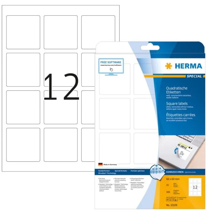 Étiquettes adhésives amovibles - 60 x 60 mm HERMA Lot de 300