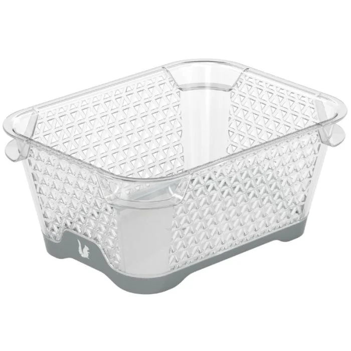 - Design bicolore : Corbeille incolore - transparent, revêtement en caoutchouc en couleur.