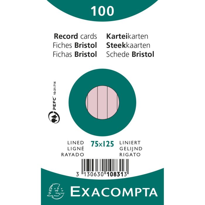 Fiches Bristol lignées - 75 x 125 mm - Rose EXACOMPTA 10831X Lot de 100