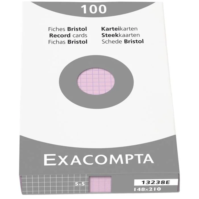 Fiches Bristol quadrillées - 148 x 210 mm - Rose EXACOMPTA Lot de 100