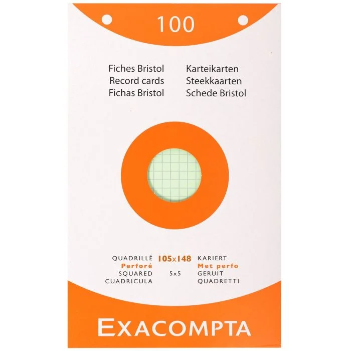 Fiches Bristol quadrillées et perforées - 105 x 148 mm - Assortiment EXACOMPTA Lot de 100