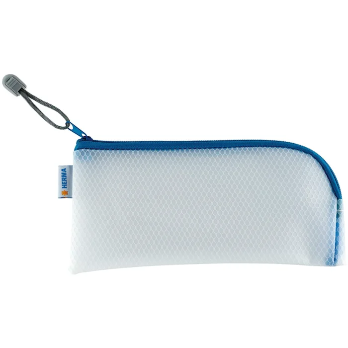 Etui de protection à zip - 230 x 110 mm - Transparent / Bleu HERMA Mesh Bags