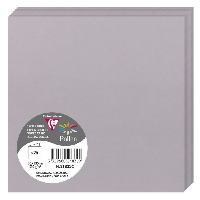 Cartes double en papier - 135 x 135 mm - Gris Koala CLAIREFONTAINE Pollen Lot de 25