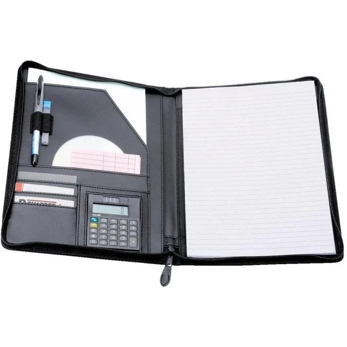 Serviette-écritoire A4 en simili cuir avec calculatrice de poche - Catana d'Alassio. Article : 30056