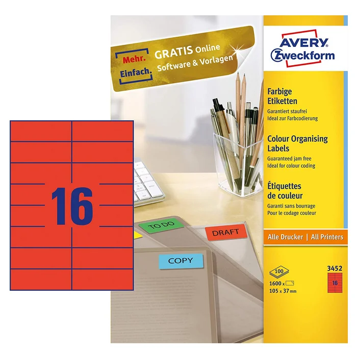 Étiquettes adhésives Rouges 105 x 148 mm pour un marquage de qualité AVERY. Article : 3456