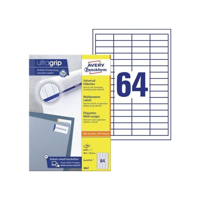 Étiquettes adhésives écologiques 48,5 x 16,9 mm pour un marquage de qualité AVERY. Article : 3667