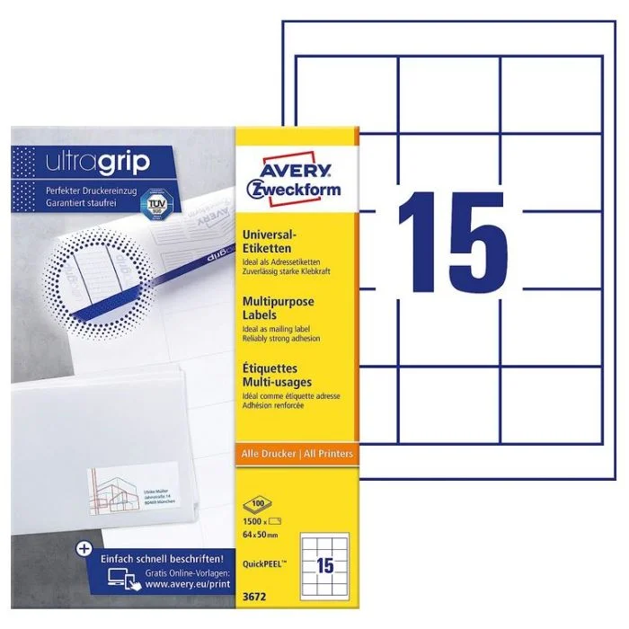 Étiquettes adhésives 64 x 50 mm AVERY Ecologique Lot de 1500