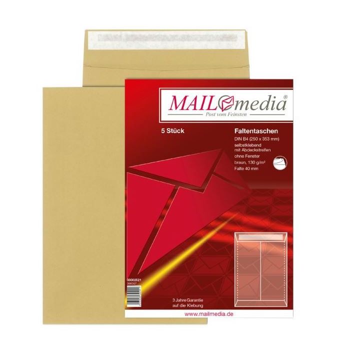 Pochettes d'expédition à soufflet 250 x 353 mm pour dossiers et livres de format A4 de MAIL MEDIA. Article : 30002521