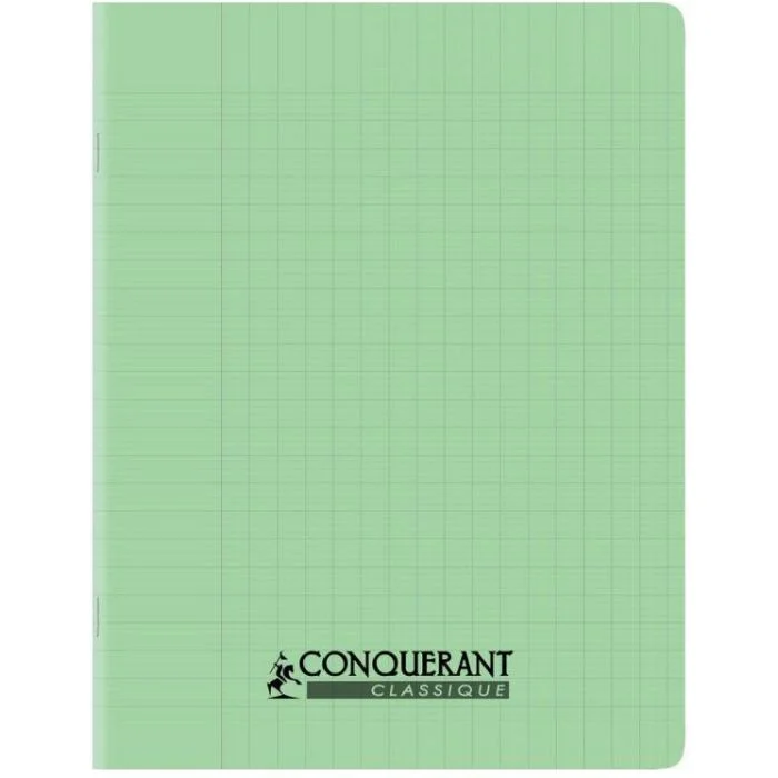 Cahier grands carreaux 17 x 22 cm avec une couverture en Polypro Vert Pastel CONQUERANT de 96 pages. Article : 100902111