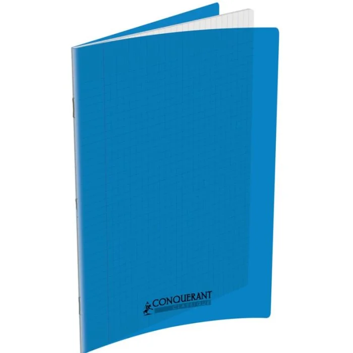 Cahier d'écolier grands carreaux 170 x 220 mm avec une couverture en Polypro Bleu Pastel CONQUERANT de 96 pages. Article : 100902114