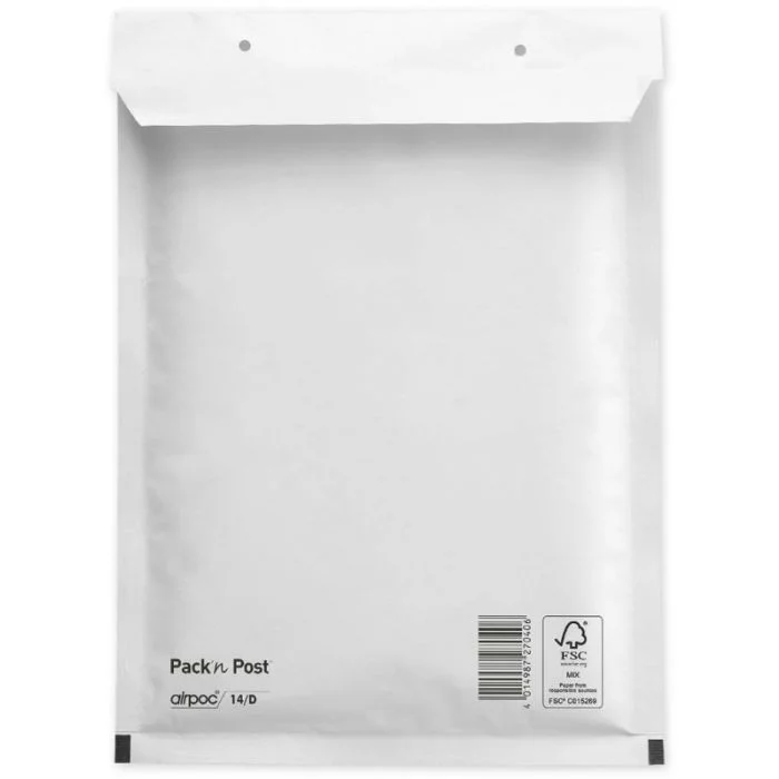 Pochettes d'expédition blanches à coussin d'air type D14, 200 x 275 mm AIRPOC pour supports de données, cadeaux publicitaires ou petits outils de MAIL MEDIA. Article : 30001276