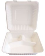 Barquette jetable avec 2 compartiments en canne à sucre biodégradable et compostable pour transporter les repas ou déjeuners NATURE STAR. Article : 41225