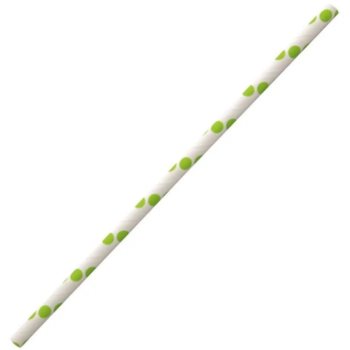 Pailles écologiques à points rigides en papier Vert/Blanc pour cocktails, boissons, etc. Article : 42117