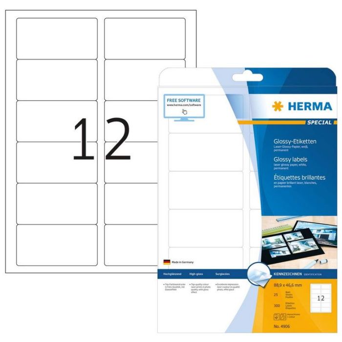 Étiquettes adhésives brillantes 88,9 x 46,6 mm pour une impression en qualité photo. Article : 4906