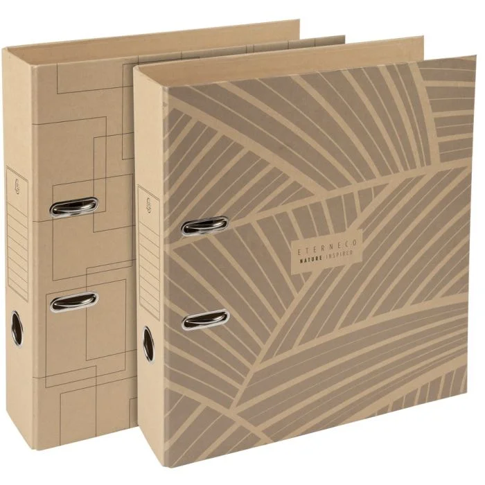 - Classeur conçu en carton recyclé recouvert d'un papier enduit d'huile végétale qui permet une excellente protection à l'eau.