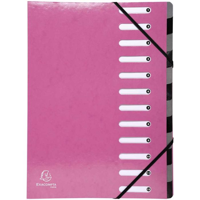 Trieur 12 compartiments Iderama avec fermeture à élastiques couleur Rose EXACOMPTA. Article : 53928E