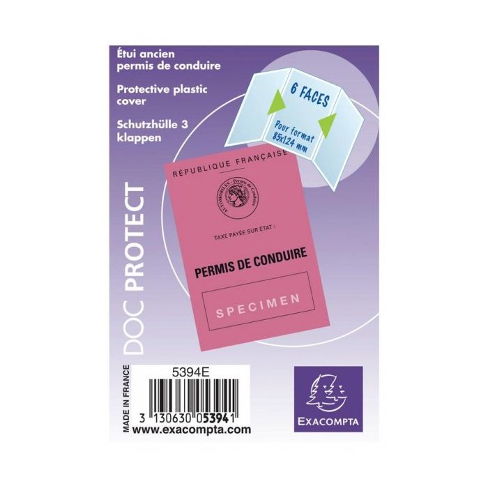 Pochette pour protéger le Permis de conduire (ancien modèle) 85 x 125 mm EXACOMPTA. Article : 5394UE