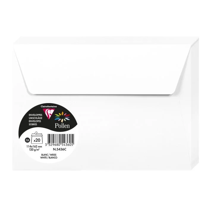 POLLEN Enveloppes - C6 114 x 162 mm - Blanc Lot de 20
