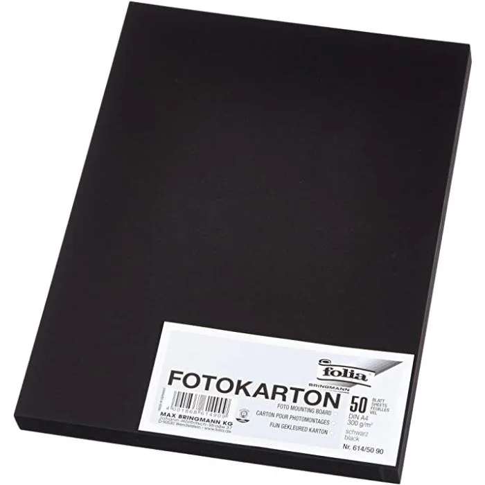 Carton de papier pour le bricolage A4 de couleur Noir FOLIA. Article : 614-50 90