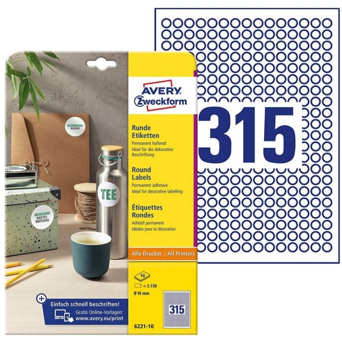 Étiquettes adhésives permanentes - Diamètre 10 mm - Blanc AVERY Lot de 3150