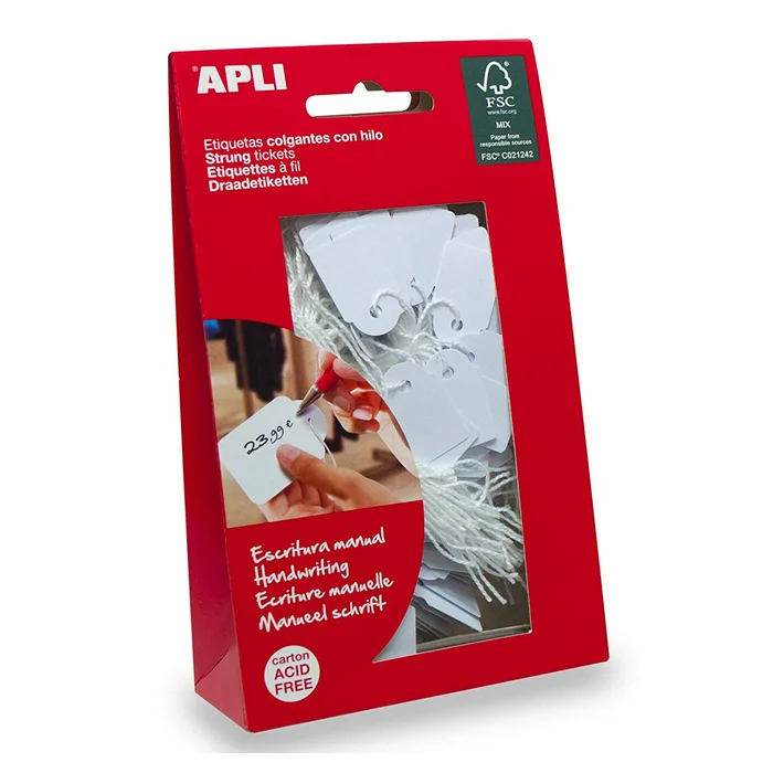 Etiquettes de prix à ficelle blanche - 22 x 35 mm APLI Lot de 100