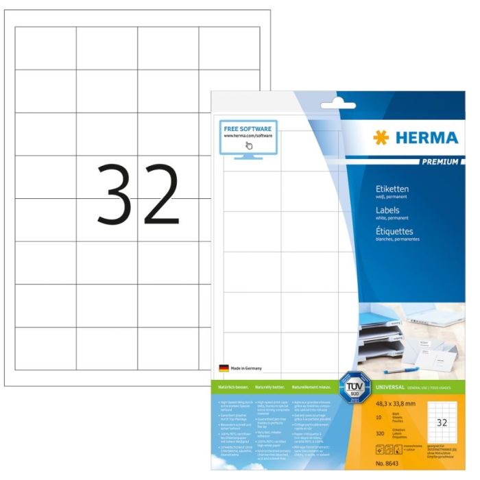 Étiquettes adhésives permanentes à imprimer 48,3 x 33,8 mm pour un marquage de qualité Premium Herma. Article : 8643