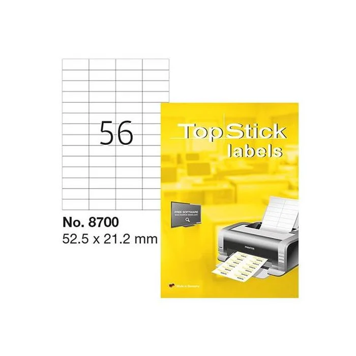 Etiquettes autocollantes permanentes 52,5 x 21,2 mm à imprimer pour étiquetage et marquage de TOP STICK. Article : 8700