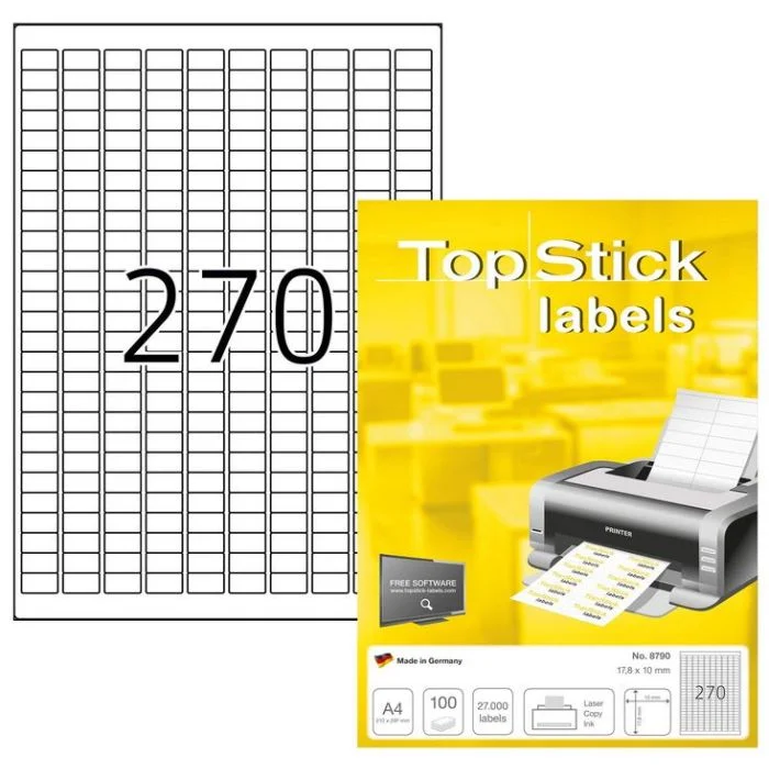 - 100 feuilles A4 par pochette, soit 27000 étiquettes.