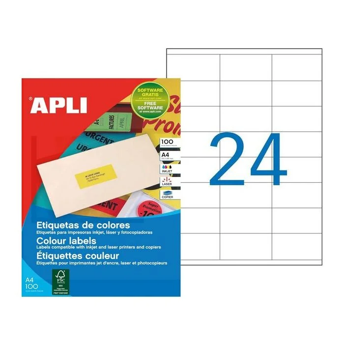 - 100 planches A4 par pochette, soit 2 400 étiquettes.