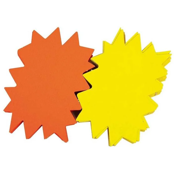 Petit carton fluo forme Étoile - Éclaté 80 x 120 mm, non effaçable. Parfait pour des indications temporaires ou permanentes. Article : 12950