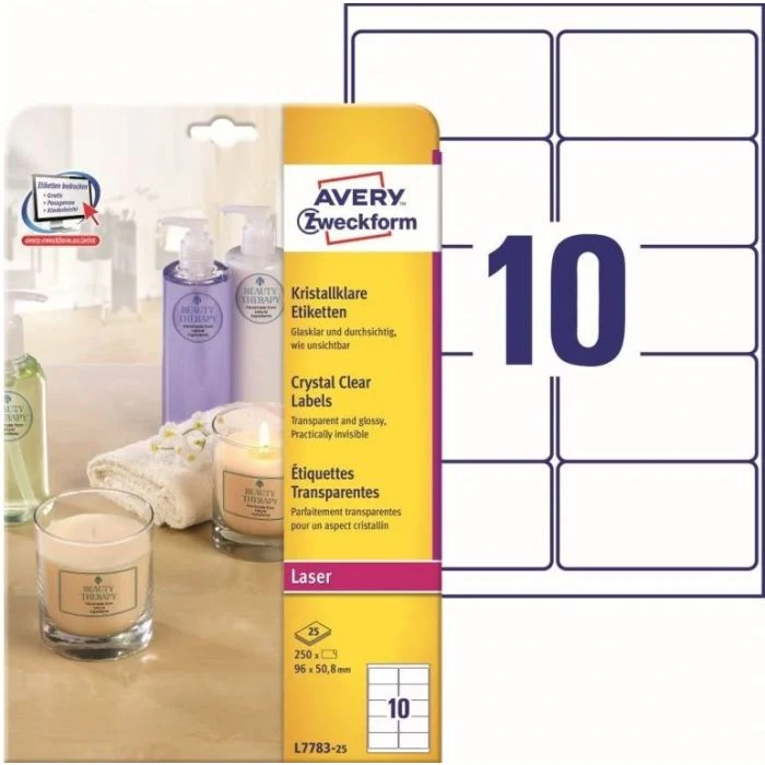 Étiquettes transparentes autocollantes très résistantes 96 x 50,8 mm AVERY. Article : L7783-25