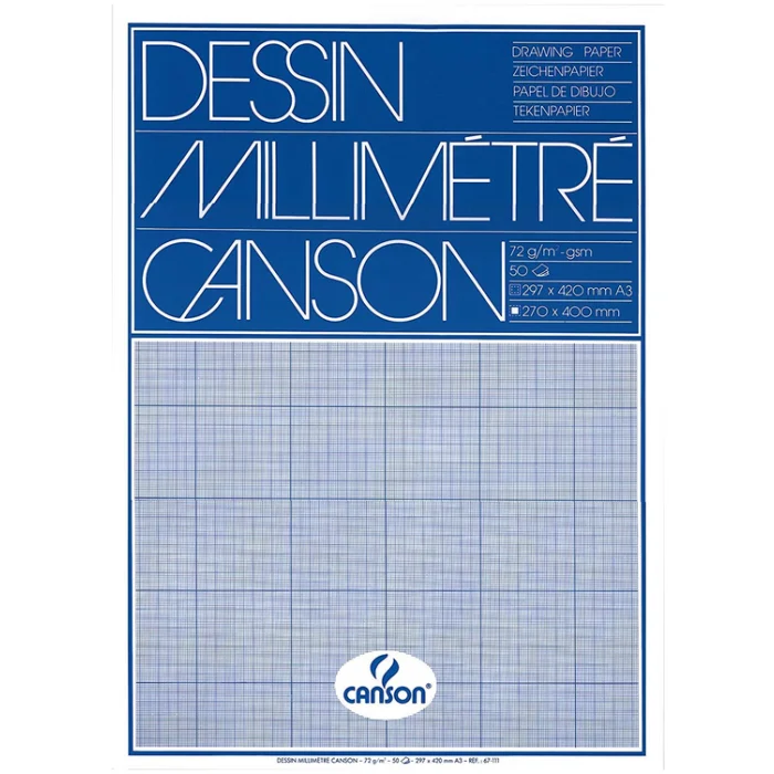 Papier Millimétré à trait Bleu - A3 CANSON Bloc de 50 feuilles