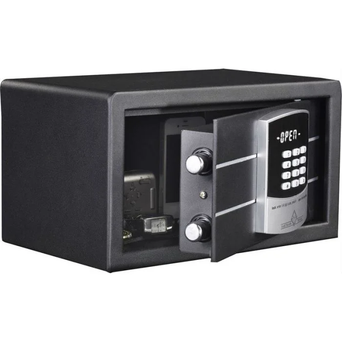 Petit coffre fort à code à sceller de 7 litres HARTMANN pour Hôtel, Hôpital, Bureau et Maison. Article : HS458-01