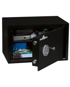 Coffres-forts compacts de sécurité à serrure à clé ou à serrure électronique adaptés pour un hôtel, un hôpital, la maison, etc. Choix de coffres pour la protection de l'ordinateur portable, les papiers, les bijoux, les liquidités et autres objets. Plusieurs modèles de coffres disponibles, de 4 litres à 88 litres. Achat sur AZ-Fournitures.com