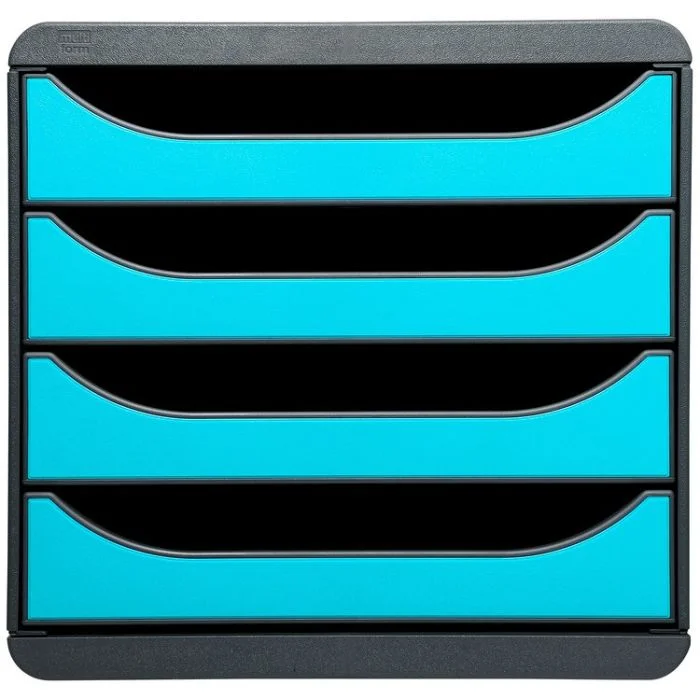Module de classement à 4 tiroirs pour Bureau et Armoire Big Box Gris Noir/Bleu Turquoise EXACOMPTA Iderama. Article : 310782D