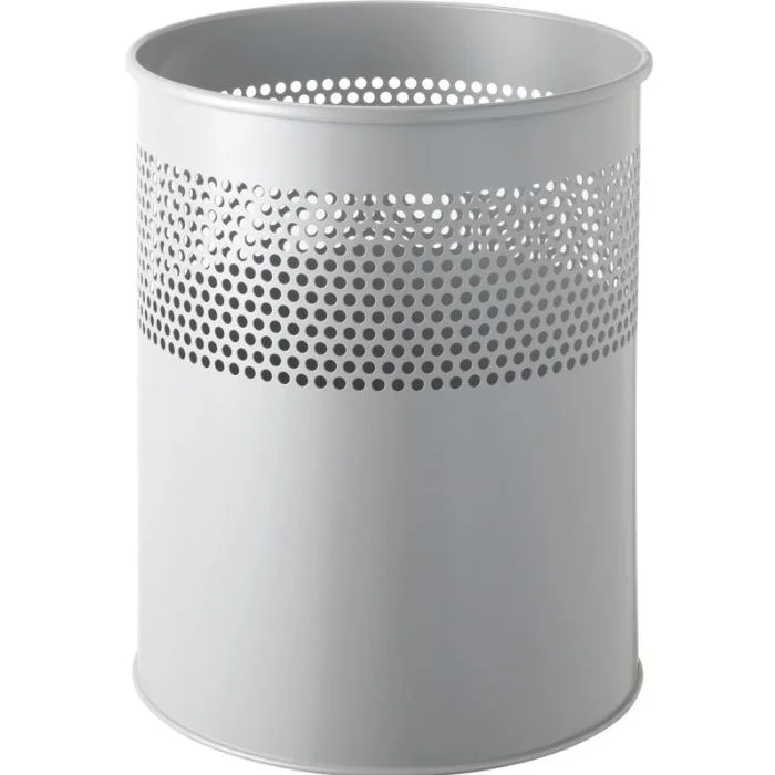 Corbeille à papier, 15 litres couleur Argent, en acier percée de trous HELIT. Article : H2515799