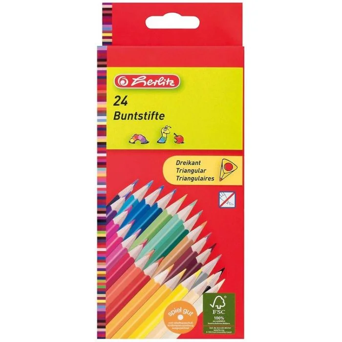 Assortiment de 24 crayons de couleurs triangulaires HERLITZ pour dessin. Article : 300000629