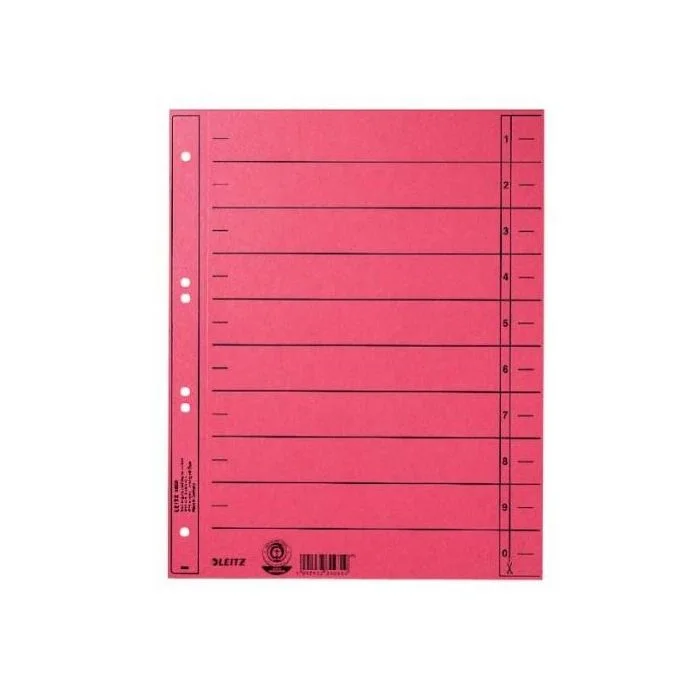 Intercalaires perforés rouges en carton 230 g/m2, format 240 x 300 mm, pour classeur de LEITZ. Article : 1658-00-25