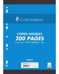 Lot de 200 pages - Copies doubles non-perforées Petits carreaux - 210 x 297 mm CONQUERANT SEPTRéférence : 339205800
