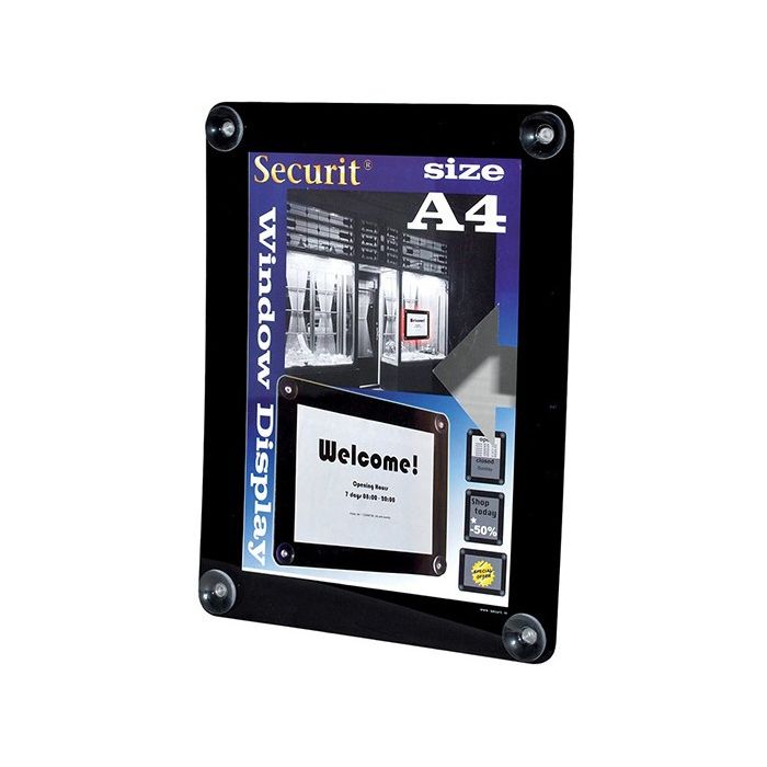 Porte-Affiches à contour noir avec ventouses pour documents A4 - 210 x 297 mm de SECURIT. Article : PFW-A4-BL