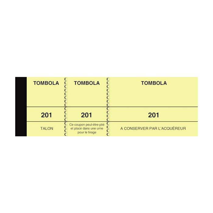 TOMBOLA Carnet de 100 tickets numérotésPrix Spécial 1,88 € 1,57 € Prix normal 2,09 €